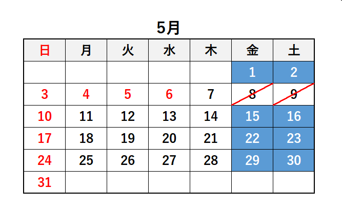 ● 5/8(金)、5/9(土)は臨時休業とさせていただきます。。